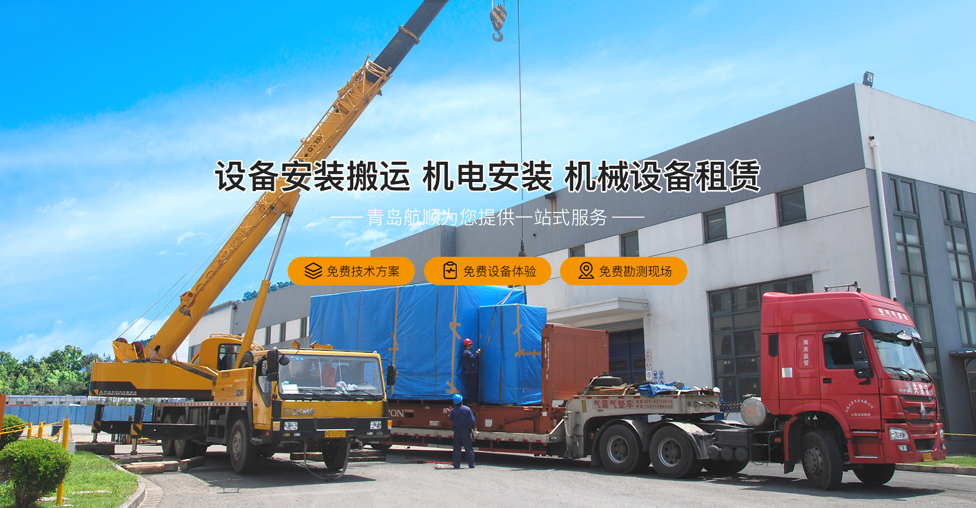 青島航順設備安裝有限公司致力于專業提供各類型精密設備、儀器,重型及超大,超重機電設備吊裝,設備搬運,工廠搬遷,設備拆卸、安裝,設備包裝,設備運輸的規模化、一體化專業性施工企業及專業服務提供商,為生產或擁有各類精密設備、大中型設備的廠商及企業提供“科學,質優、安 全專業”的工程解決方案和完善的服務項目。